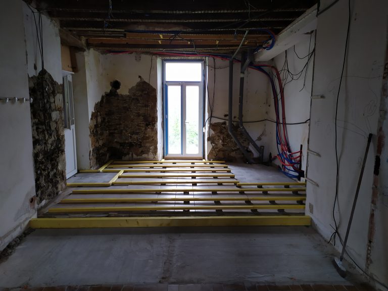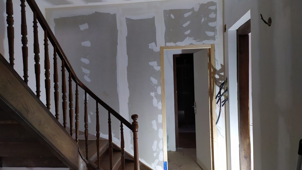 - Rénovation de l’électricité avec création d’un tableau électrique, tirage de tous les réseaux, pose des appareillages, prises, luminaires, plafonniers, mise à la terre de l’installation, câblage internet des différentes pièces, pose chauffages