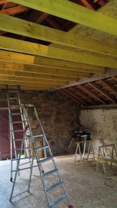 - Création d’une mezzanine avec bastaings et dalles OSB