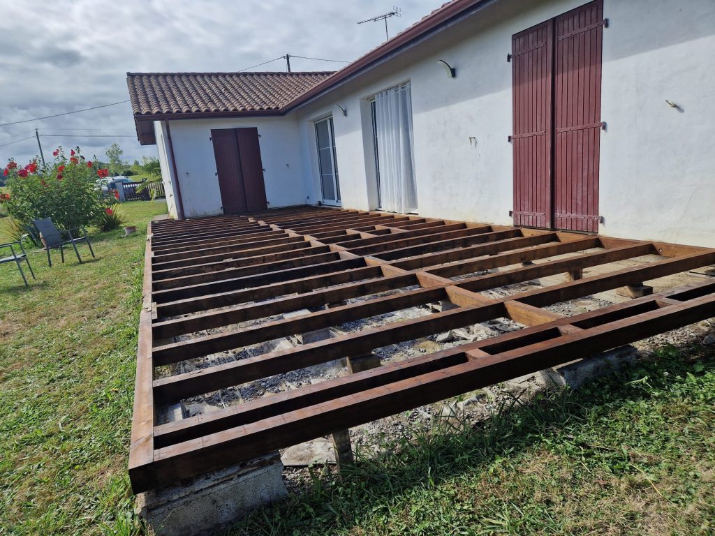 Rénovation d'une terrasse bois, reprise des lambourdes et traitement